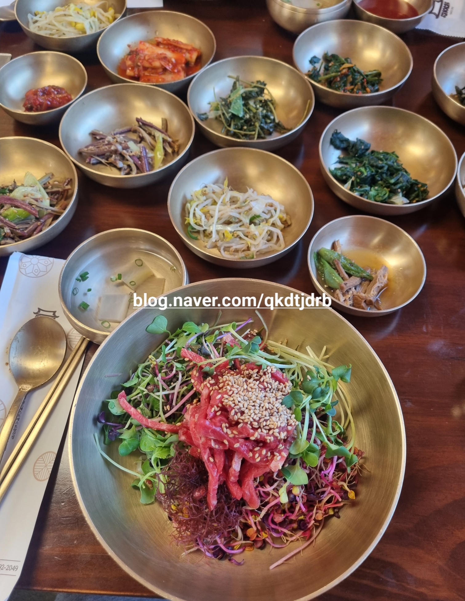 🥇 한정식(1인) — 15가지 넘는 나물반찬 + 된장찌개 + 누룽지까지 한상 완성